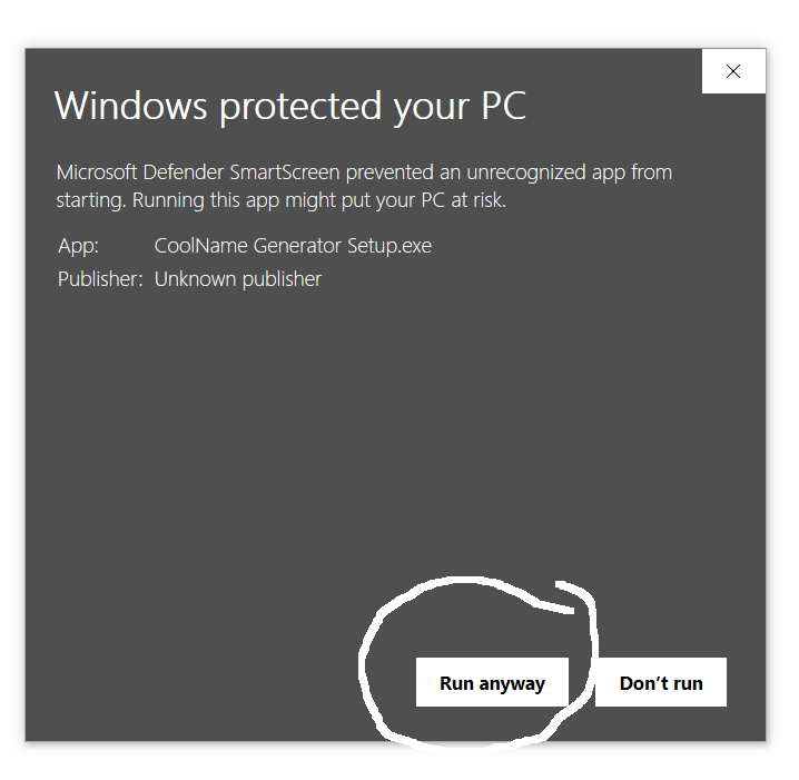 Step 2. Press "Run anyway."